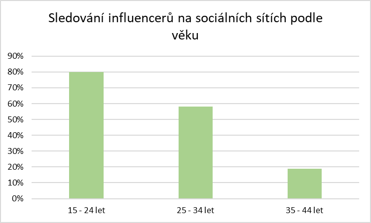 Influenceři hrají v online nákupech významnou roli především pro mladší generaci ve věku 15 - 24 let.