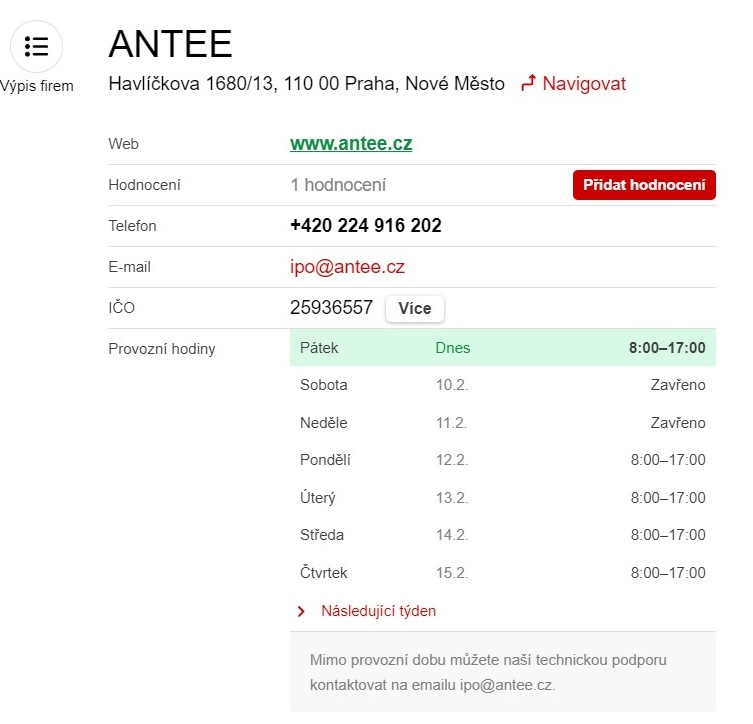 Rozhodujete-li se, zdali a do jakého firemního katalogu svůj podnik registrovat, nechte si poradit od specialistů, kteří firemní katalogy znají a dokáží právě pro váš obor vybrat takový katalog, který bude z hlediska vašeho marketingu tím nejefektivnějším. V ANTEE máme těchto specialistů hned několik.