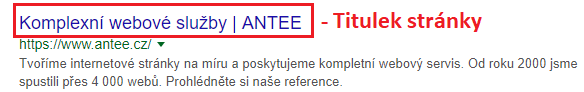 Příklad: Titulek stránky je v tomto případě nastaven takto: