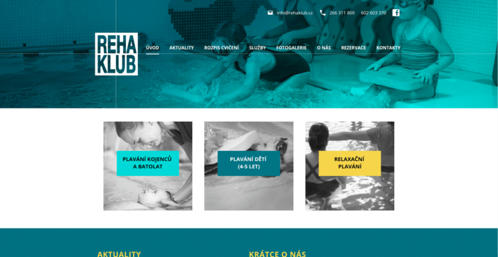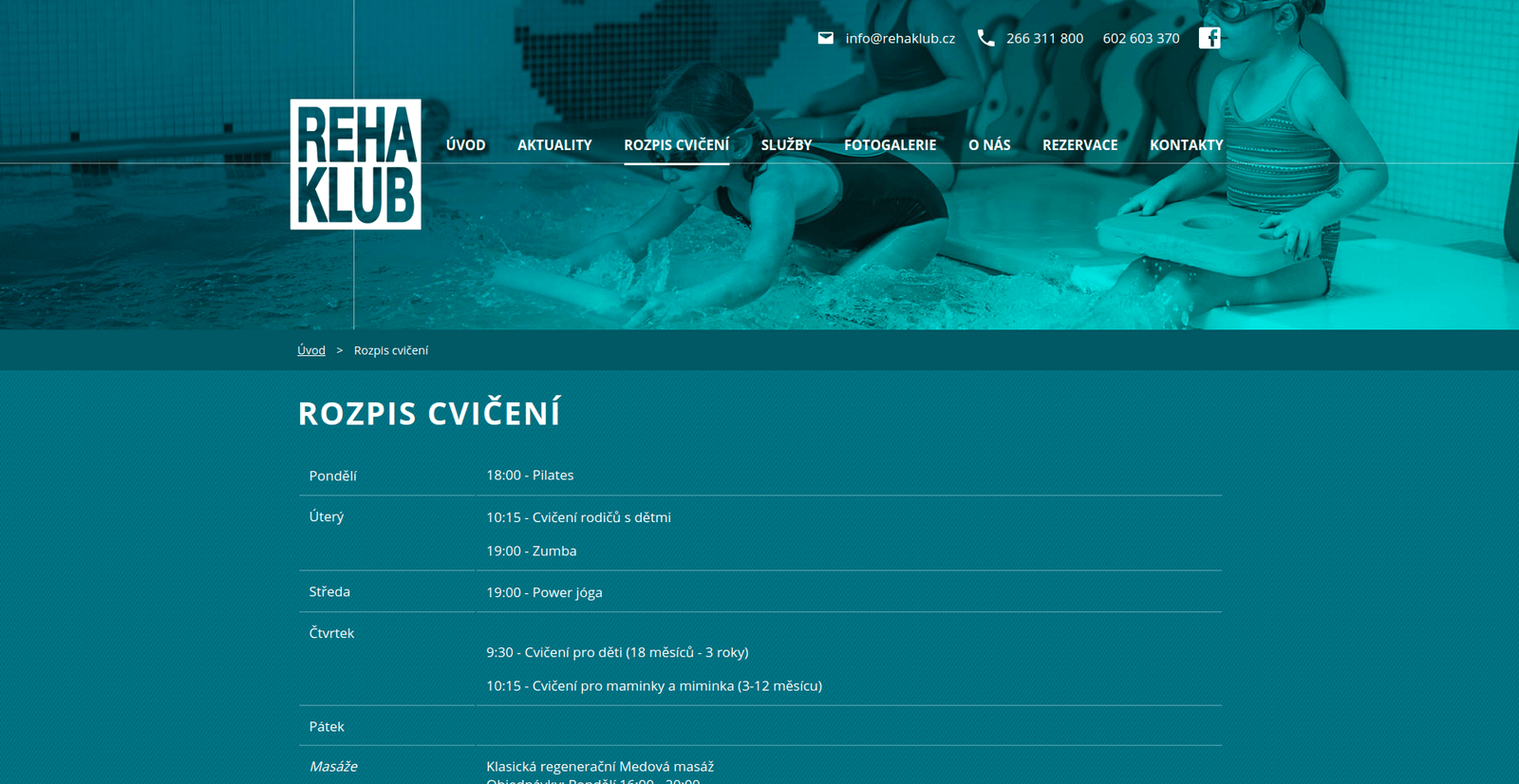 Jednoduchý web přináší vše podstatné: rozpis cvičení, informace o službách a aktuality.