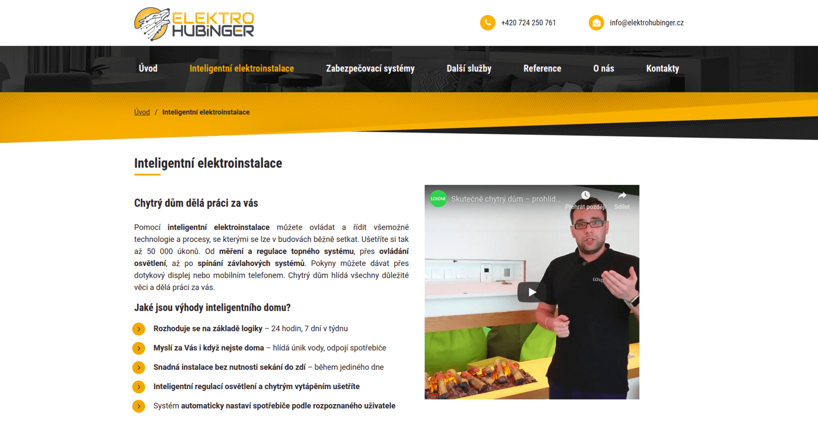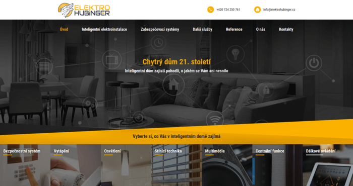 Elektro Hubinger se specializuje na elektroinstalace pro chytré domy. Nabízí zabezpečení, vytápění, osvětlení a další dálkově ovládané vybavení.