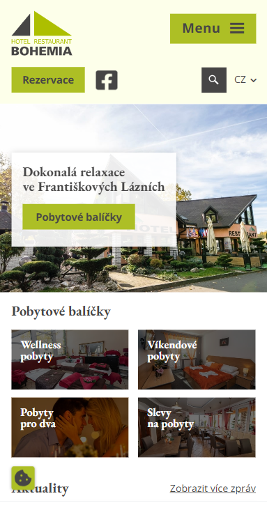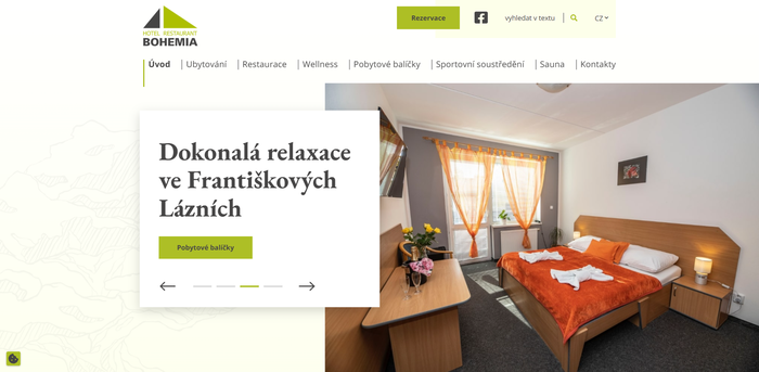Hotel Bohemia se nachází ve Františkových lázních a to přímo v lázeňském parku. Nabízí víkendové i wellness pobyty. Web obsahuje také přehledný katalog a rozšířené fulltextové vyhledávání na webu.
