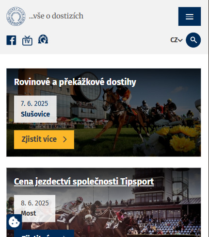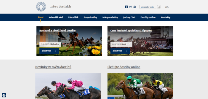 Součástí webu je přehled jednotlivých akcí dostihů.