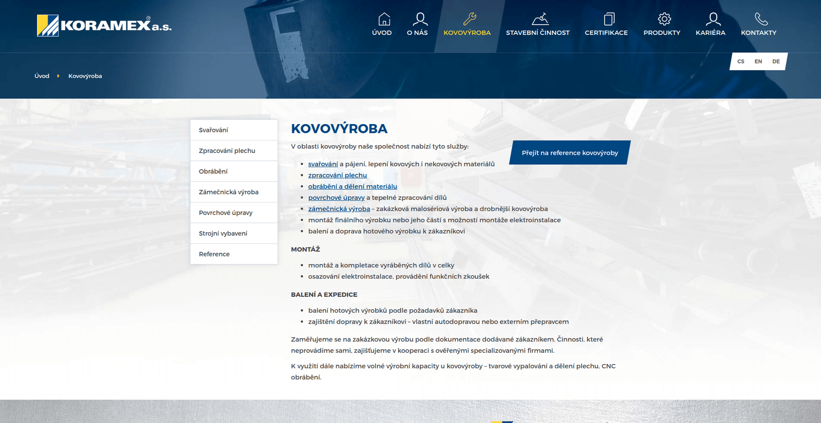 KORAMEX se zaměřuje na kovovýrobu, svařování, obrábění, a související práce.
