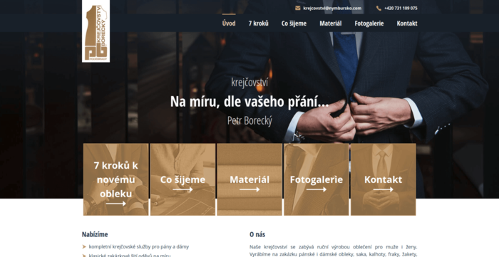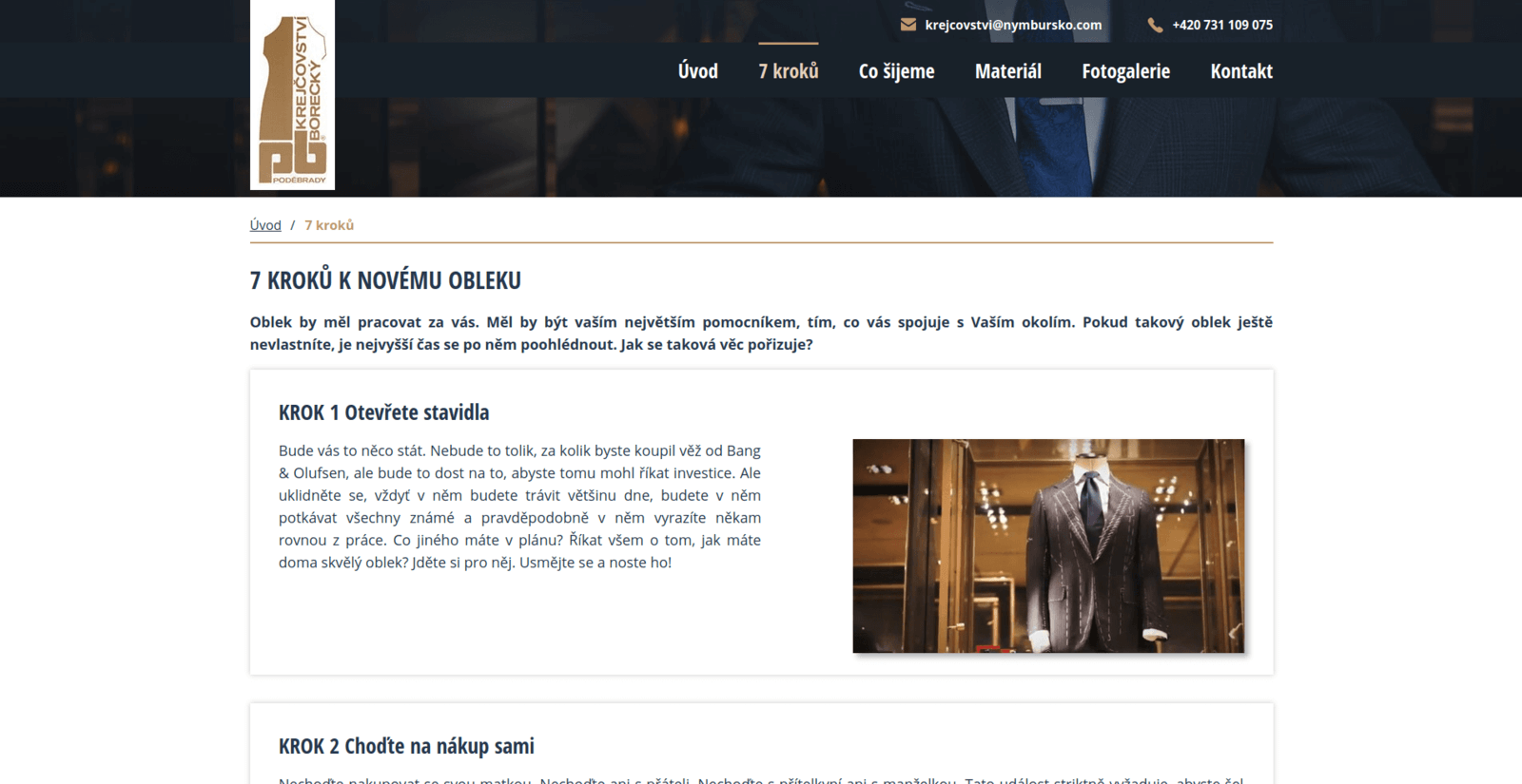 Web je netradičně koncipován jako 7 kroků k novému obleku a zákazníky tak provádí celým procesem krejčovského řemesla.