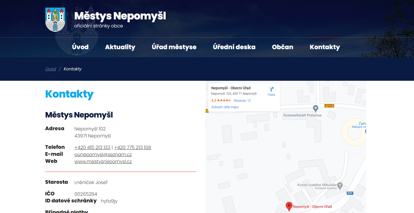 Úvod > Reference > Obce a města > Městys Nepomyšl