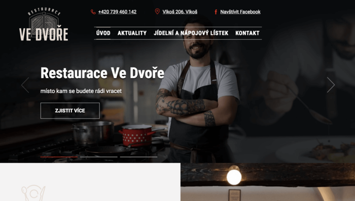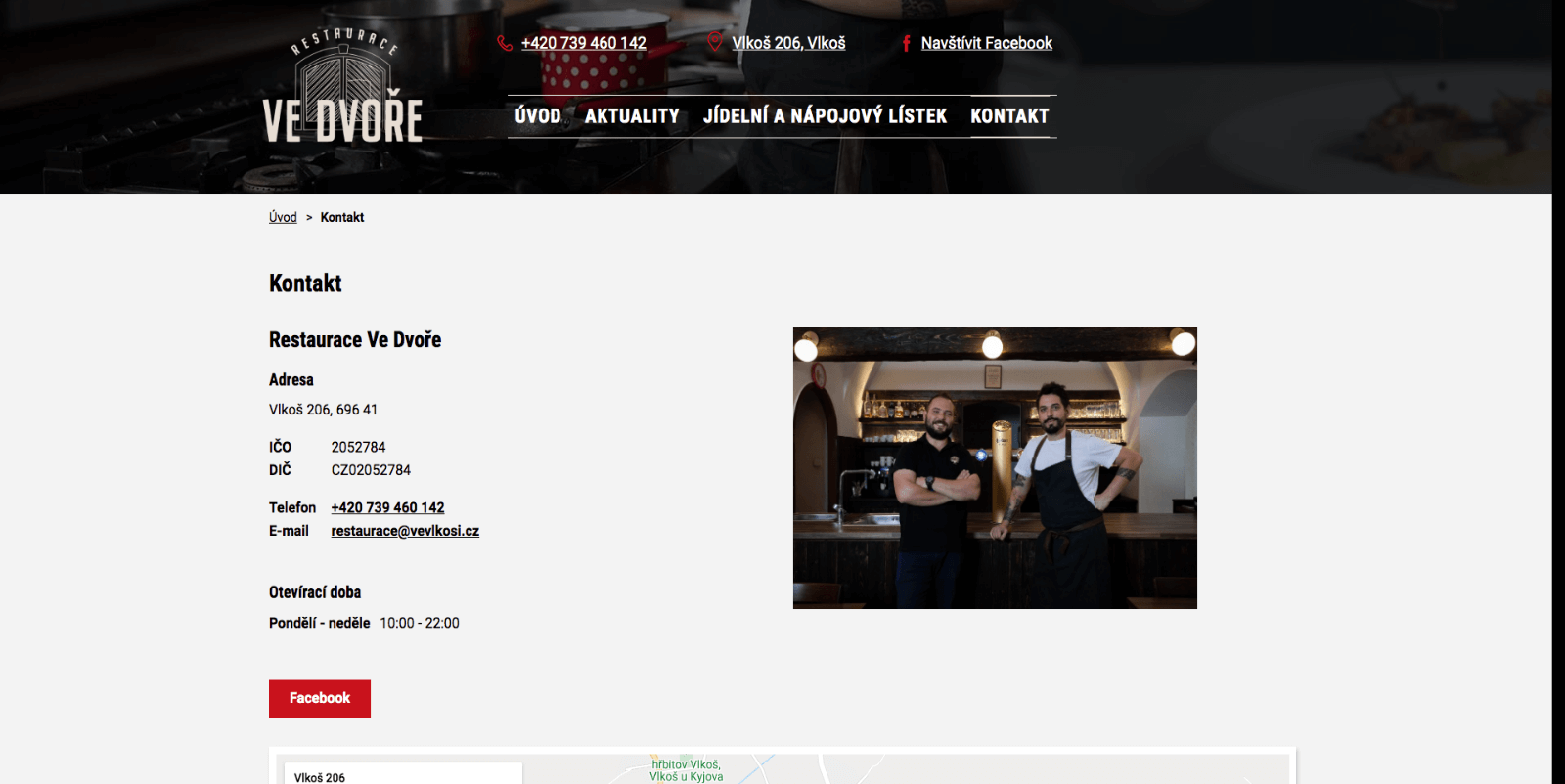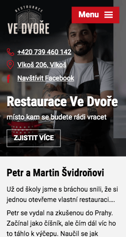 Web směruje hosty přímo do restaurace – snadno si prohlédnou jídelní lístek a dohledají kontakt.